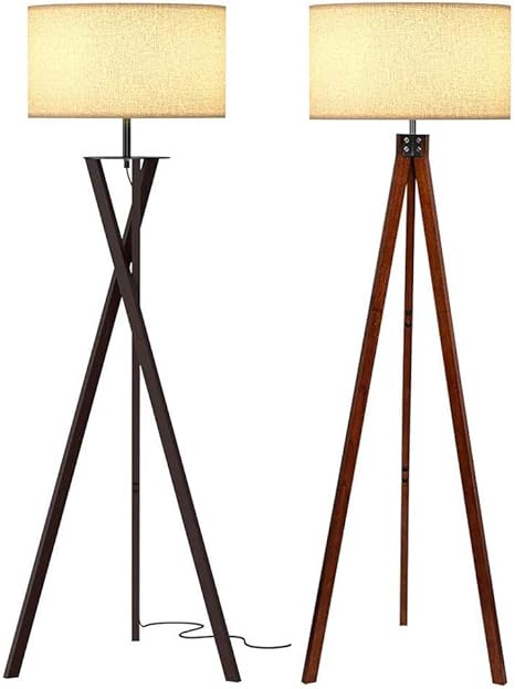 Lepower Wood Tripod Floor Lamp Modern Design Studying Light For Living Room Bedroom Office Brown Black Amazon Com